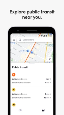 Baya ga samar da kekuna, aikace-aikacen Citi Bike kuma yana nuna lokutan tafiye-tafiye na jigilar jama'a masu zuwa. Wannan ya haɗa da cikakken bayani game da jiragen ƙasa na MTA subway, shuttles, da bas-bas na gida, masu iyakancewa, da na express. Haka kuma, zai nuna lokutan jiragen ƙasa na LIRR commuter rail, Metro-North commuter rail, PATH rapid transit, Bee-Line local da express buses, NYC Ferries, Staten Island Ferry, AirTrain JFK, AirTrain Newark, Roosevelt Island Tramway, da kuma jiragen ƙasa na NJT commuter rail, light rail, da bas-bas.