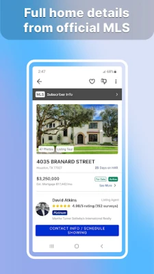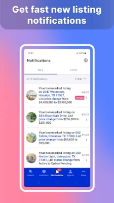 Yi sha'awar kowace dukiya tare da cikakkun bayanai masu zurfi, ciki har da farashi, girman ɗaki, fasalulluka na ciki da waje, da jadawalin buɗe gida. Zaka iya zamewa cikin hotuna har 50 na kowane gida, wanda ya fi na kowane aikace-aikace. Haka kuma, akwai ingantaccen taswira tare da Street View don taimaka maka kallon muhallin gidan. HAR.com yana baka damar adana gidajen da kake so, raba su cikin sauƙi ga abokai da iyali, da kuma adana buƙatun bincikenka don samun sanarwa nan take idan an saka sabbin gidaje masu dacewa. Akwai kuma tsarin hira ta kai tsaye don haɗa ka da kowane wakili nan take game da kowace dukiya, kuma fasahar "Nearby Agents" tana baka damar gano wakilai masu gidaje a kusa da kai ko waɗanda suka yi nunin gidaje a yankinka. Idan kana so, zaka iya haɗa kai da REALTOR® don samun damar shiga abubuwan ciki na musamman waɗanda ba a bayyana su ga jama'a ba akan HAR.com.