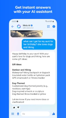 Baya ga hirar sirri, Messenger yana haɗa ka da al'ummomi masu kama da kai daga makarantu, unguwanni, da ƙungiyoyin sha'awa. Ku zauna tare da masu ƙirƙira da kuka fi so ta hanyar shiga tashoshinsu na musamman don abubuwan gaskiya da ba na yau da kullun ba. Raba muhimman lokutan ranarka ta hanyar Labarai, ko kuma rubuta bayanan tunani masu sauri waɗanda ke ɓacewa bayan awanni 24. Kuma kada mu manta da Meta AI, mataimakinka na musamman wanda zai iya amsa duk tambayoyinka, ba ka shawara, ko ma taimaka maka da aikin gida. Tare da Meta AI, zaka iya kuma hura sabuwar rayuwa a cikin hotuna, ƙirƙira, gyara, har ma da ba da su motsi, don buɗe tunaninka.