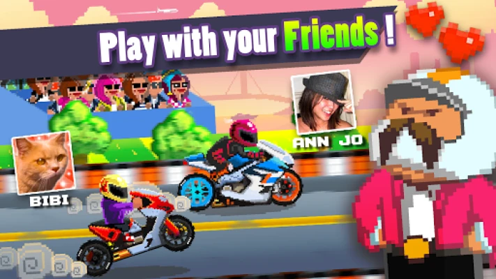 Kada ka bari nishaɗin ya tsaya a nan! Fafata da abokanka na Facebook a tsere masu ban sha'awa: wa zai zama mafi sauri a kan hanya? Abokai suna taimakawa juna, don haka za su iya ba ka tallafi kyauta ko ma su aiko muku da kyaututtuka masu daraja. Shirya don saduwa da ma'aikata masu ban dariya kamar Popy Wheeling, Big Bron, da Uncle Tatoo a cikin wata duniya mai cike da rudani, inda za ka kammala manyan ƙoƙarin neman kuɗi masu yawa. *Motor World : Bike Factory* daga ohbibi zai kamo hankalinka gaba ɗaya da yanayinsa na musamman, haruffa masu rai, da kuma abubuwan mamaki marasa iyaka. Haura kan babur dinka, duniyar taka ce, kuma kasada na jira!