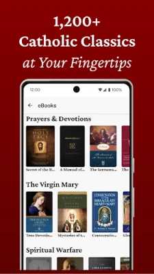 Gano tarin littattafan Katolika na gaskiya: ayyukan ruhi, rubuce-rubucen Waliyyai, Ubannin Coci, da Malamai. Har ila yau, akwai koyarwar bangaskiya da addu'o'i don jagora zuwa tsarki. Kowane littafi an zaba shi don ciyar da ruhi da karfafa alherin Ubangiji.