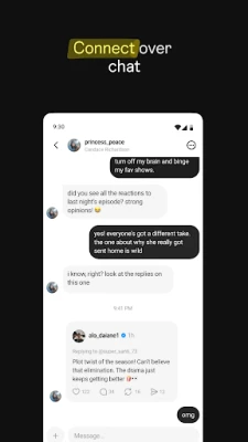 Threads ce manhajar Instagram mai tushen rubutu, inda al'ummomi ke haɗuwa don tattauna batutuwan da suka shafi su. Haɗu da masu kirkira da masu sha'awa ɗaya, raba ra'ayoyinka, ko gina taron mabiya. Samu damar shiga mabiyanka na Instagram, sarrafa tattaunawarka.